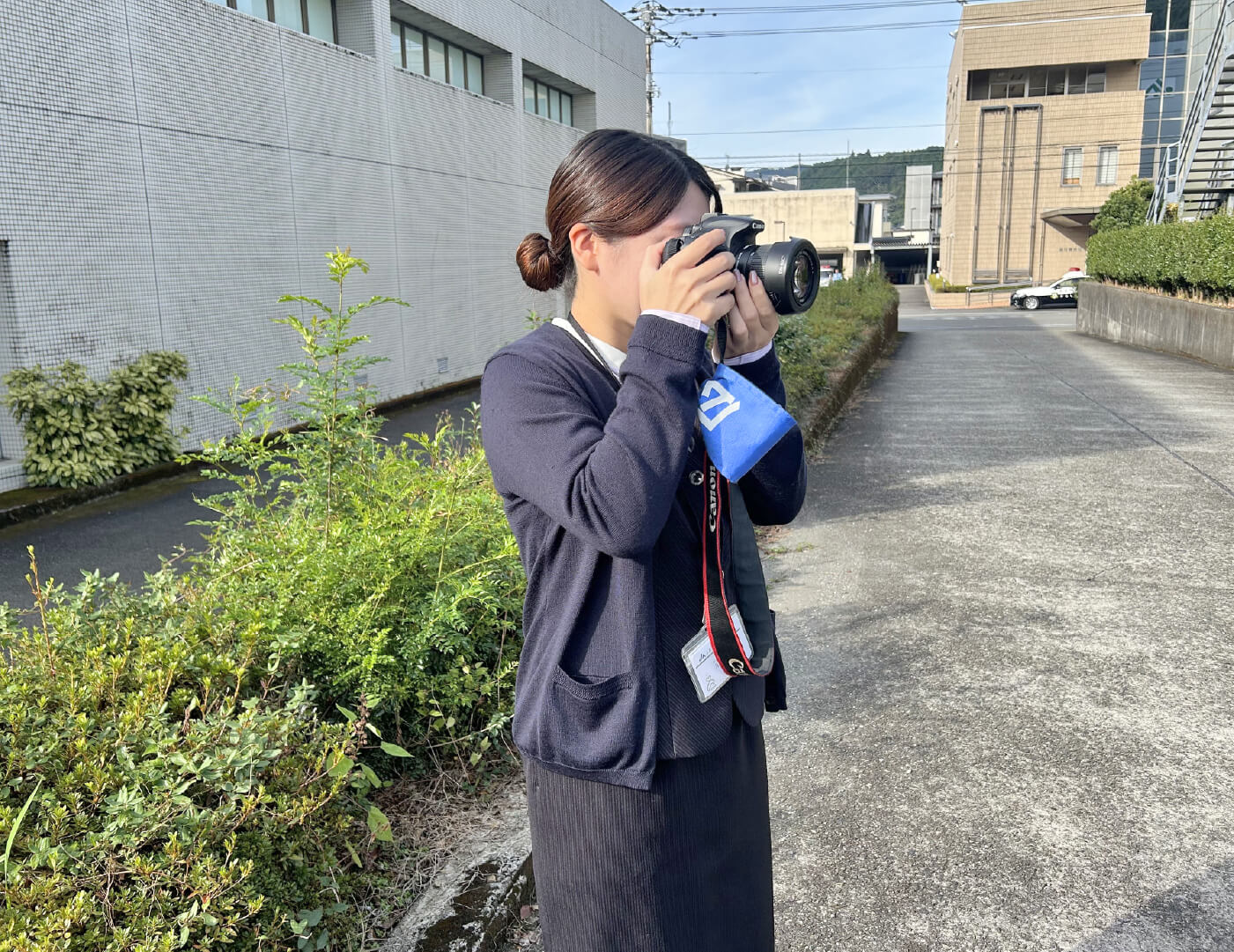 取材先で初めてお会いする方にはもちろん、普段一緒に働いている職員同士でも笑顔で挨拶することを心掛けています。